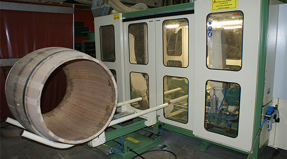 In this grinding machine for wooden barrels, our lubrication-free linear guides and plain bearings guarantee a long service life.