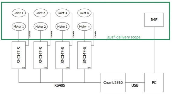 igus® does not develop, build or sell control components. The scope of supply of a robolink® system is limited to either the articulated arm or the articulated arm with "drive unit".