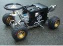 Bearings on steering linkage and connection in a racing beer crate.